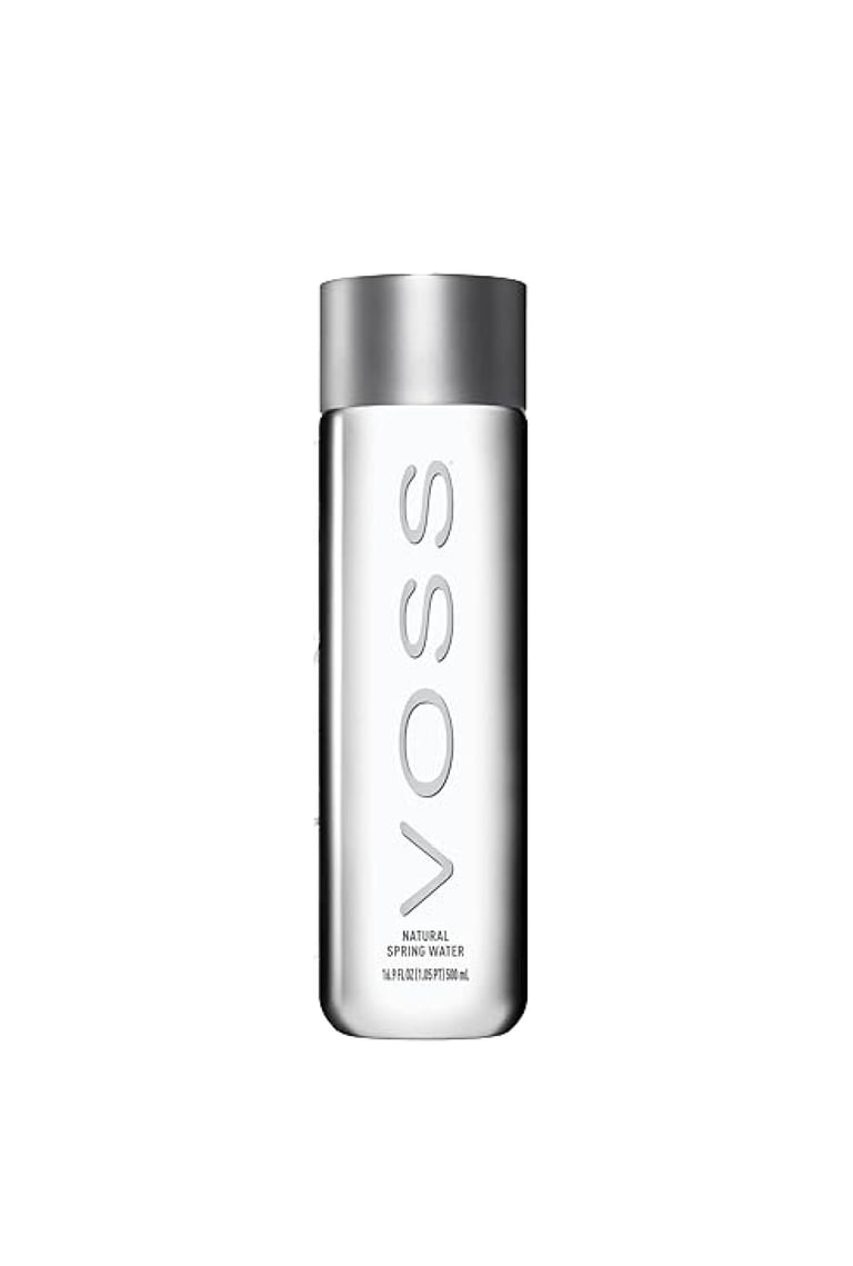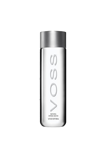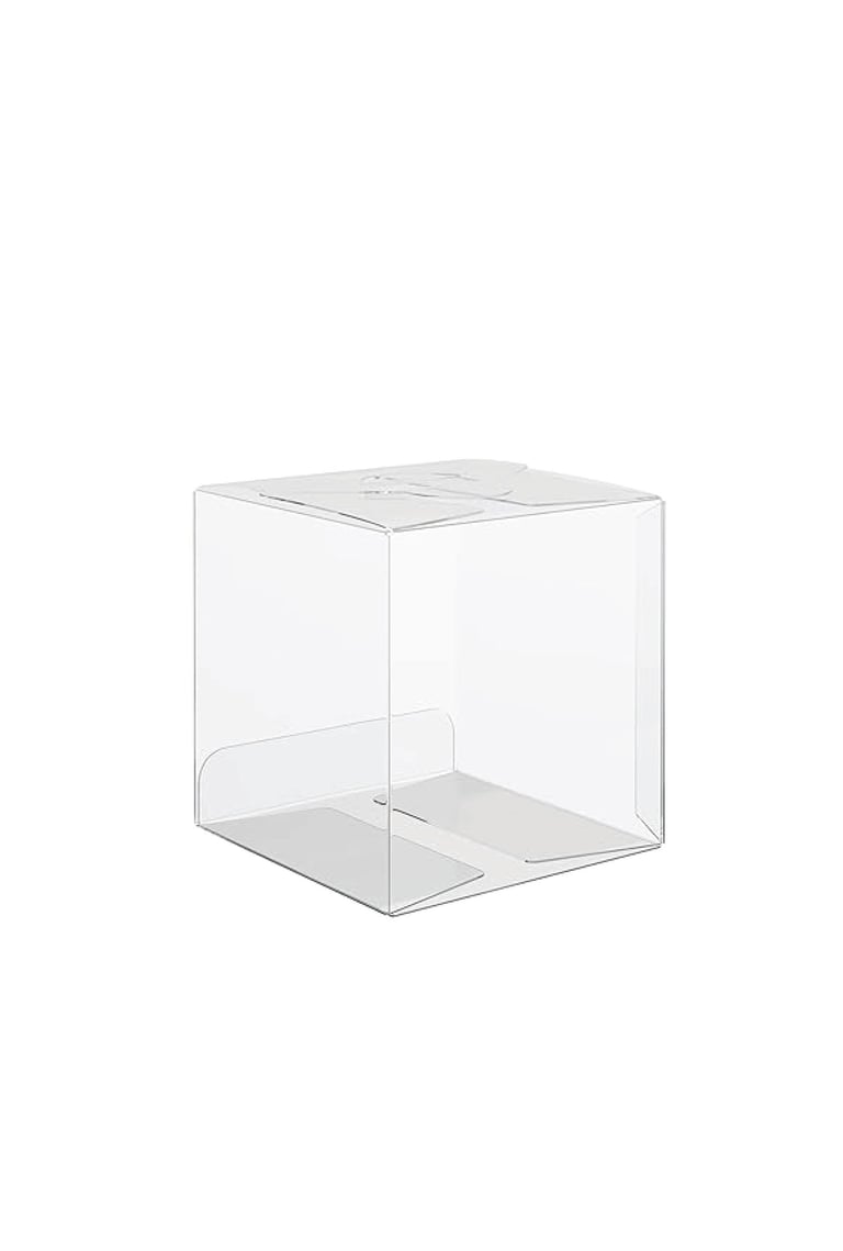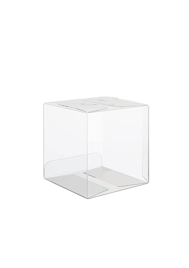Fill the box with a Voss water bottle and three 3" clear cubes.